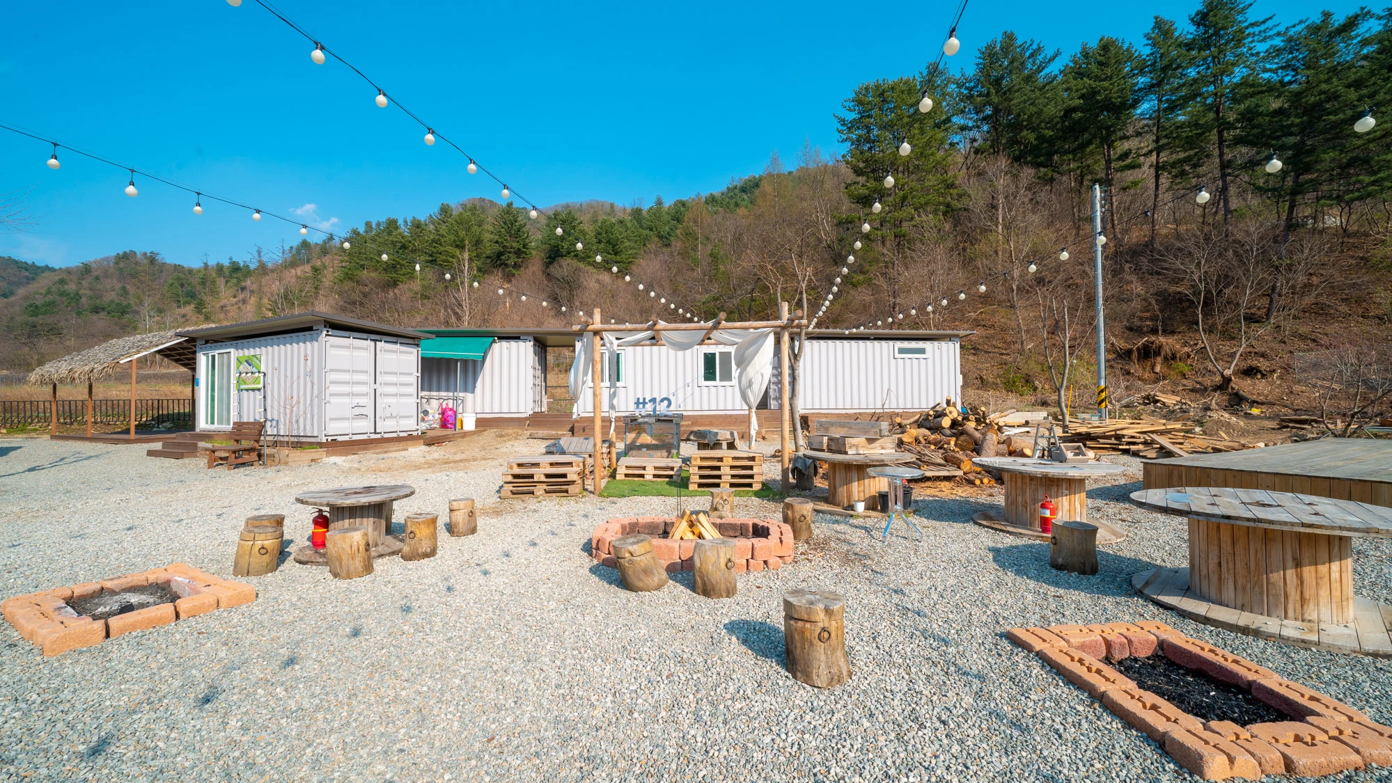 캠프파이어를 할 수 있는 야외포토존이 준비되어 있습니다.